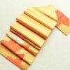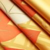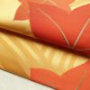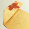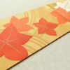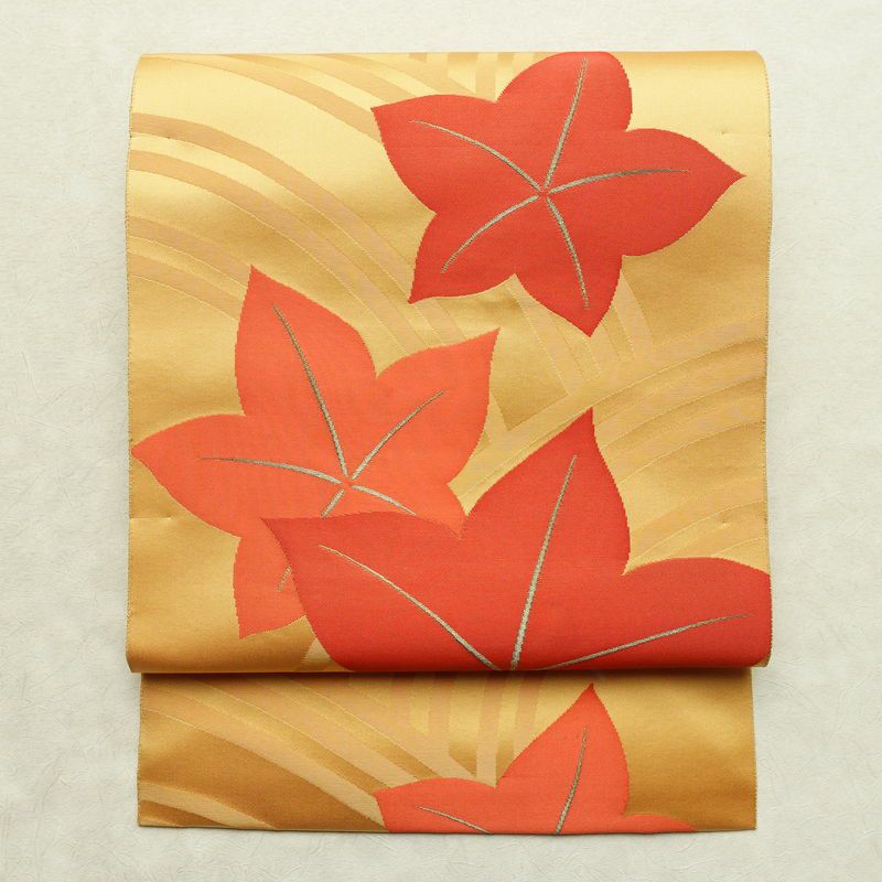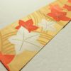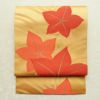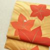 鮮やかな黄土色に紅葉モチーフを描いた六通柄の名古屋帯です。滑らかな正絹生地は締めやすく、松葉仕立てで気軽にお使いいただけます。秋の風景を思わせる色彩とデザインが、季節感あふれる装いを演出します。