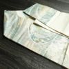 名古屋帯 六通柄 正絹 流水・波柄 名古屋仕立て なごや帯 リサイクル帯 帯 箔 緑・うぐいす色
