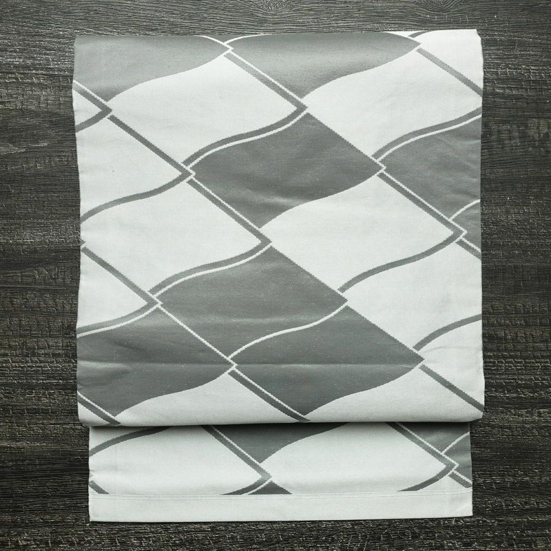 落ち着いたグレー地に古典文様を配した六通柄の名古屋帯です。正絹の柔らかく心地よい質感があり、名古屋仕立てで扱いやすく実用的です。シンプルながら品格を感じさせるデザインで、良品として状態も大変良く、普段のお出かけから幅広い場面で活躍する帯です。