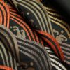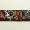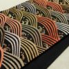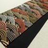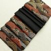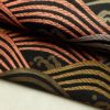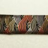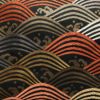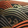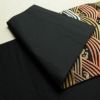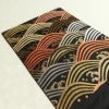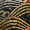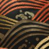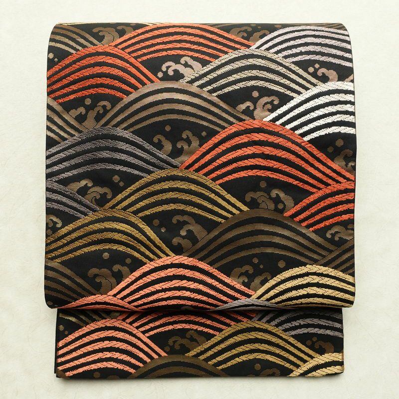黒地に流水模様を描いたシックな名古屋帯です。正絹素材のしなやかで心地よい風合いがあります。落ち着いた黒に箔の煌めきが加わり、上品で大人の装いを演出します。幅広い年代におすすめの一本です。