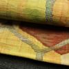名古屋帯 六通柄 良品 正絹 亀甲柄 通し仕立て なごや帯 リサイクル帯 帯 モダン 紬地 黄・黄土色です。ざっくりとした風合いとなっております。
