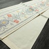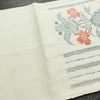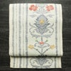 名古屋帯 六通柄 正絹 木の葉・植物柄 通し仕立て なごや帯 リサイクル帯 帯 紬地 白