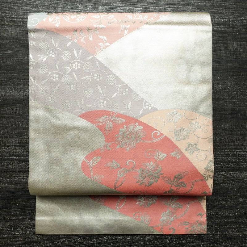 名古屋帯 六通柄 正絹 花柄 名古屋仕立て なごや帯 リサイクル帯 帯 箔 金・銀