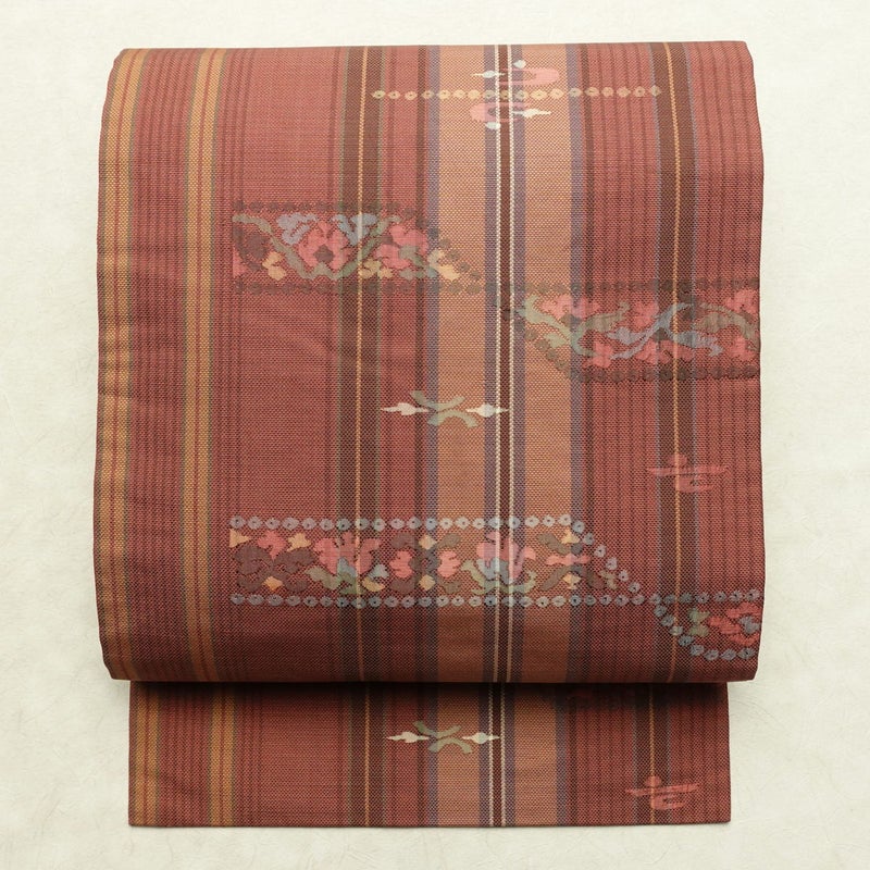 名古屋帯 六通柄 正絹 幾何学柄・抽象柄 名古屋仕立て なごや帯 リサイクル帯 帯 多色使いです。心地よい風合いとなっております。