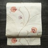 名古屋帯 六通柄 正絹 花柄 名古屋仕立て なごや帯 リサイクル帯 帯 箔 白