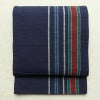 名古屋帯 全通柄 正絹 縞柄・線柄 通し仕立て なごや帯 リサイクル帯 帯 モダン 青・紺