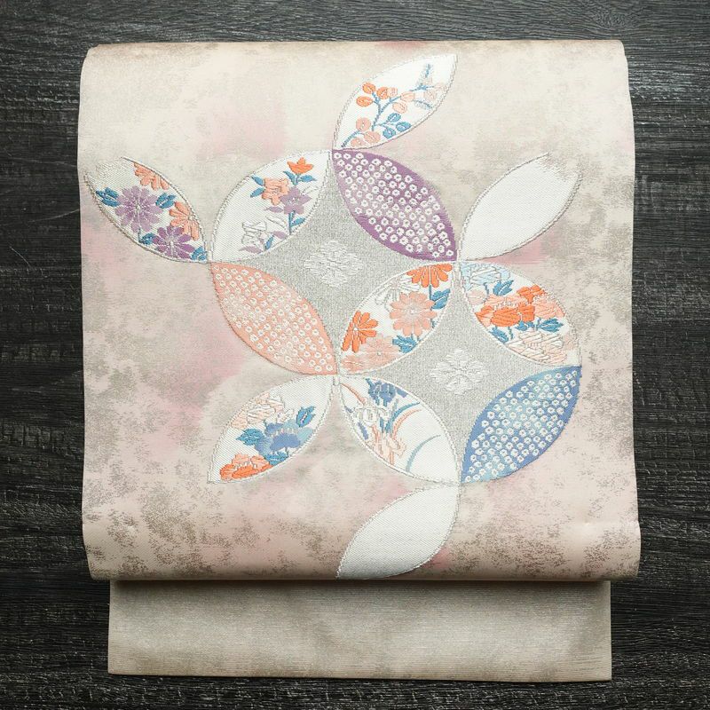 名古屋帯 太鼓柄 正絹 古典柄 名古屋仕立て 箔 帯 ピンク
