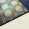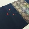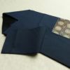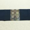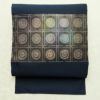幾何学柄・抽象柄が深い紺のシックな色調で描かれた名古屋帯。箔の繊細な輝きが華やかさを添え、正絹素材のさらりとした風合いが快適さを提供します。名古屋仕立てで特別な日や日常にも調和する一枚です。