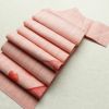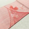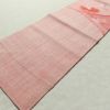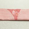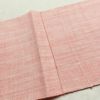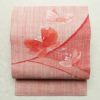 紬地のざっくりとした風合いが特徴的な名古屋帯。花柄が優美に描かれ、ピンク色の柔らかな配色が装いを華やかに彩ります。松葉仕立てのデザインが美しい着こなしを実現し、特別な日にもぴったりの美品です。