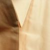 ベージュの色合いが柔らかさを感じさせる正絹名古屋帯。花柄と箔の装飾が品格を高め、滑らかな風合いが特徴です。名古屋仕立ての構造が着物姿を美しく整え、シンプルながらも洗練された印象を与えます。