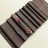 小豆色やエンジ色の深みある色合いに古典柄を配した正絹の太鼓柄名古屋帯です。通し仕立てで仕上げられており、心地よい手触りが着る人の装いに温かみと品格をプラスします。