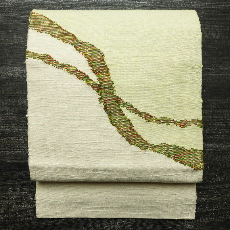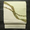 名古屋帯 太鼓柄 正絹 幾何学柄・抽象柄 松葉仕立て なごや帯 リサイクル帯 帯 紬地 緑・うぐいす色