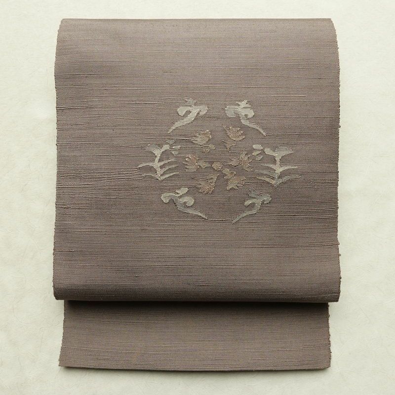 落ち着いた色調が魅力の通し仕立ての名古屋帯です。シンプルなデザインと、正絹の柔らかな風合いで、日常着やおしゃれ着に重宝します。