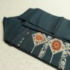 落ち着いた紺色を基調にモダンな雰囲気で植物文様を描いた名古屋帯です。正絹ならではのしなやかで心地よい風合いがあり、名古屋仕立てで使いやすい仕様です。自然をモチーフにしながらも現代的な印象があり、落ち着きの中に洗練された華やかさを添えます。おしゃれ着として幅広く活用できます。
