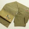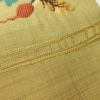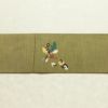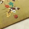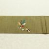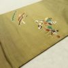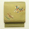 黄土色を基調に洒落感のある模様を施した太鼓柄の名古屋帯です。正絹の心地よい風合いがあり、柔らかく締めやすいのが魅力です。落ち着いた色合いながらデザインに個性があり、普段のお出かけやカジュアルな場面に最適です。リサイクル品ながら状態が大変良く、長くご愛用いただけます。
