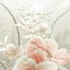 桜の花を刺繍で表現した華やかな名古屋帯です。正絹のざっくりとした風合いがあり、未使用品のため美しい状態を保っています。銀の輝きが上品で、華やかさを添える一本です。