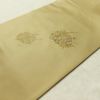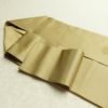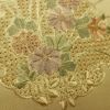 落ち着いた色合いを基調に、スワトウ刺繍で木の葉模様を繊細に表現した太鼓柄名古屋帯です。正絹の滑らかな質感が高級感を添え、上品かつ落ち着いた雰囲気を演出します。シンプルながらも刺繍の美しさが際立ち、洒落感のあるおしゃれ着やお出かけ用にぴったりです。美品のため、特別感を求める方におすすめです。