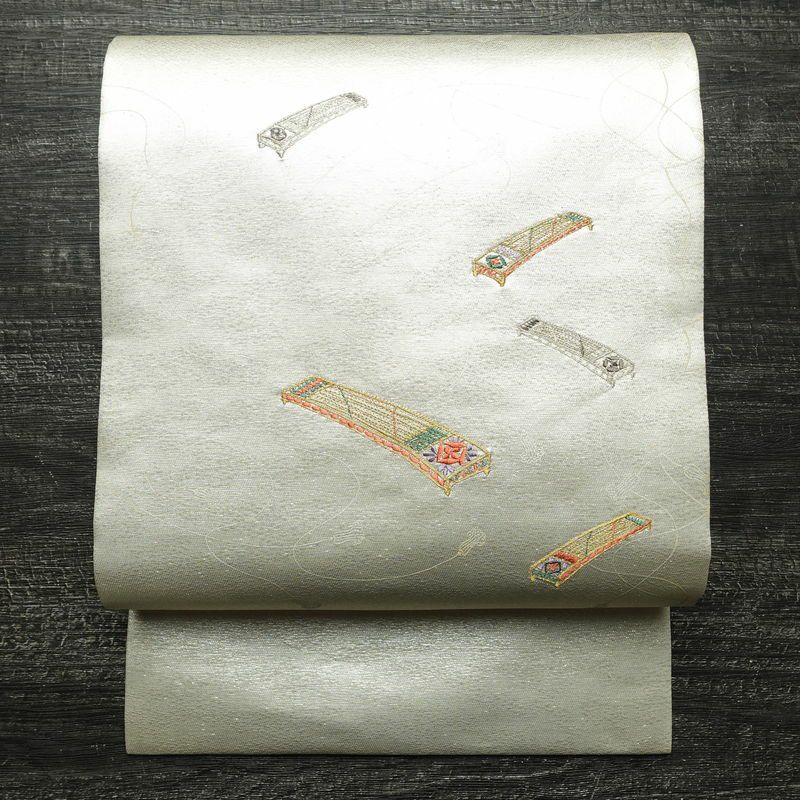 名古屋帯 太鼓柄 正絹 その他の柄 名古屋仕立て なごや帯 リサイクル帯 帯 刺繍 シンプル 金・銀
