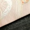 名古屋帯 太鼓柄 正絹 古典柄 名古屋仕立て なごや帯 リサイクル帯 帯 刺繍 箔 金糸 シンプル ピンク 白です。さらりとした風合いとなっております。