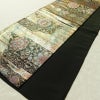 名古屋帯 太鼓柄 良品 正絹 幾何学柄・抽象柄 通し仕立て なごや帯 リサイクル帯 帯 箔 黒です。こしのある風合いとなっております。