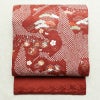 名古屋帯 太鼓柄 美品 絞り 正絹 古典柄 名古屋仕立て なごや帯 リサイクル帯 帯 刺繍 箔 赤・朱です。さらりとした風合いとなっております。