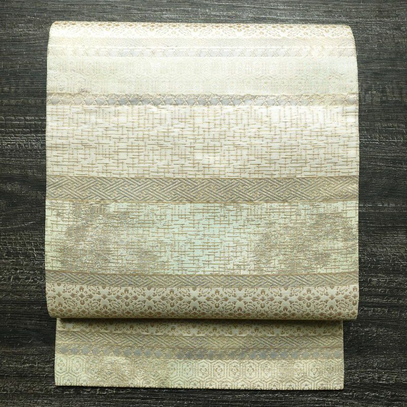 名古屋帯 太鼓柄 正絹 縞柄・線柄 名古屋仕立て なごや帯 リサイクル帯 帯 金糸 グレー