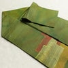 名古屋帯 太鼓柄 正絹 幾何学柄・抽象柄 名古屋仕立て なごや帯 リサイクル帯 ポケット付き 帯 紬地 緑・うぐいす色