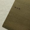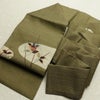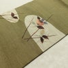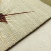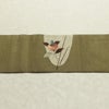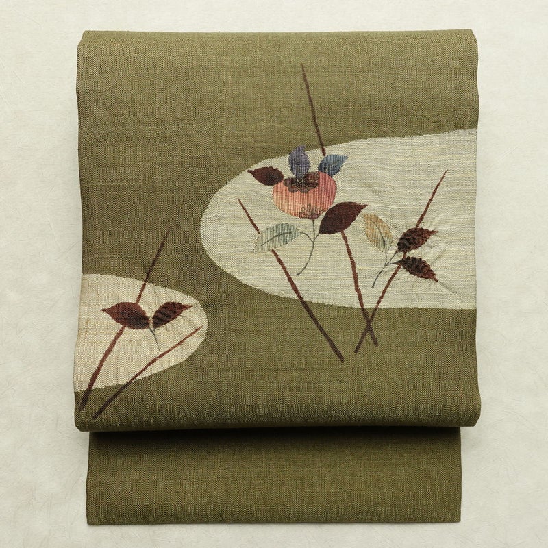 名古屋帯 太鼓柄 美品 柿渋染 正絹 木の葉・植物柄 名古屋仕立て なごや帯 リサイクル帯 帯 モダン シンプル 洒落 緑・うぐいす色です。ざっくりとした風合いとなっております。