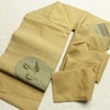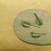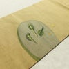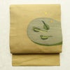 名古屋帯 太鼓柄 良品 正絹 人物・動物柄 名古屋仕立て なごや帯 リサイクル帯 帯 おたまじゃくし シンプル 洒落 黄・黄土色です。ざっくりとした風合いとなっております。