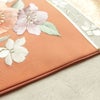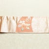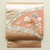 名古屋帯 太鼓柄 良品 正絹 名古屋仕立て なごや帯 リサイクル帯 帯 刺繍 箔 サーモンピンク ピンクです。しっかりとした風合いとなっております。