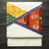 名古屋帯 太鼓柄 正絹 花柄 通し仕立て なごや帯 リサイクル帯 帯 白