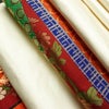 名古屋帯 太鼓柄 正絹 花柄 通し仕立て なごや帯 リサイクル帯 帯 白です。こしのある風合いとなっております。