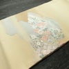 名古屋帯 太鼓柄 美品 正絹 花柄 名古屋仕立て なごや帯 リサイクル帯 帯 菊 ベージュ