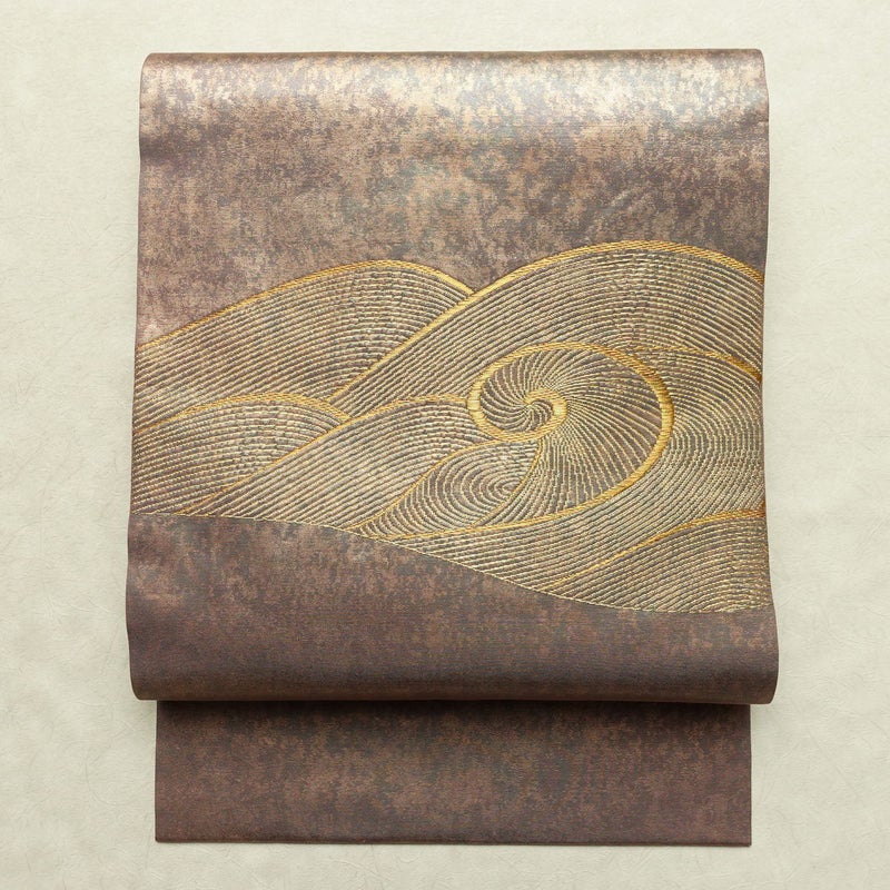 名古屋帯 太鼓柄 良品 正絹 流水・波柄 名古屋仕立て なごや帯 リサイクル帯 帯 箔 紫・藤色