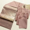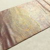 名古屋帯 太鼓柄 良品 正絹 流水・波柄 名古屋仕立て なごや帯 リサイクル帯 帯 箔 紫・藤色です。さらりとした風合いとなっております。