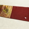 名古屋帯 太鼓柄 正絹 流水・波柄 名古屋仕立て なごや帯 リサイクル帯 帯 箔 小豆・エンジです。心地よい風合いとなっております。