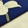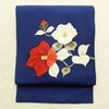 名古屋帯 太鼓柄 正絹 花柄 名古屋仕立て なごや帯 リサイクル帯 帯 金彩 青・紺です。さらりとした風合いとなっております。