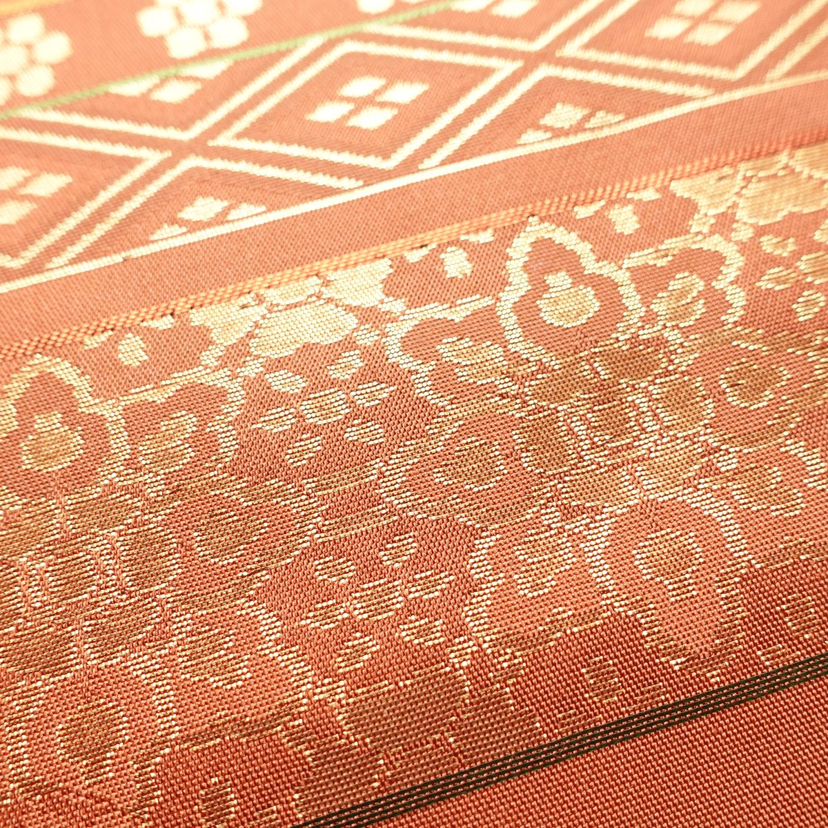 他の画像を見る 0 名古屋帯 太鼓柄 つづれ織 正絹 幾何学柄・抽象柄 松葉仕立て なごや帯 リサイクル帯 帯 金糸 銀糸 モダン シンプル 緑・うぐいす色 ¥ 10,800 税込 カートに入れる お気に入りに登録する