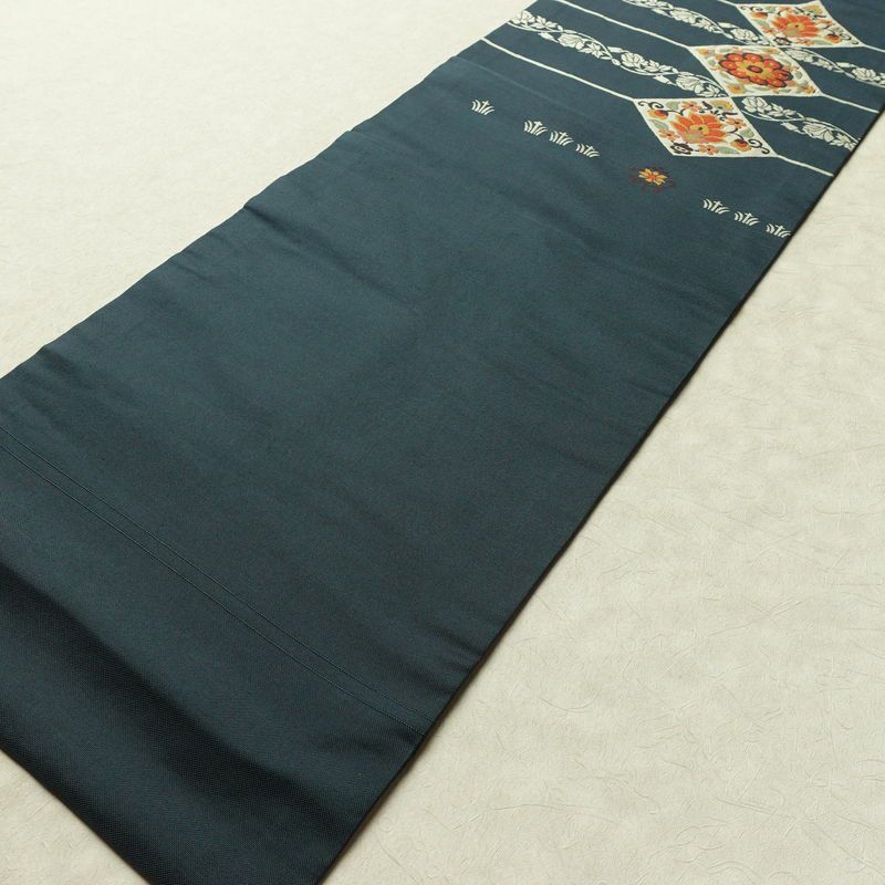 仕立て方法もいろいろです。現在は胴に巻く部分から手先まで半分に折られた名古屋仕立てが主流ですが、手先だけ半分に折られている松葉仕立て、たれから手先まで半分に折らず、袋帯と同じようにお太鼓幅で仕立てられたおそめ仕立て(袋名古屋帯)などがあります。