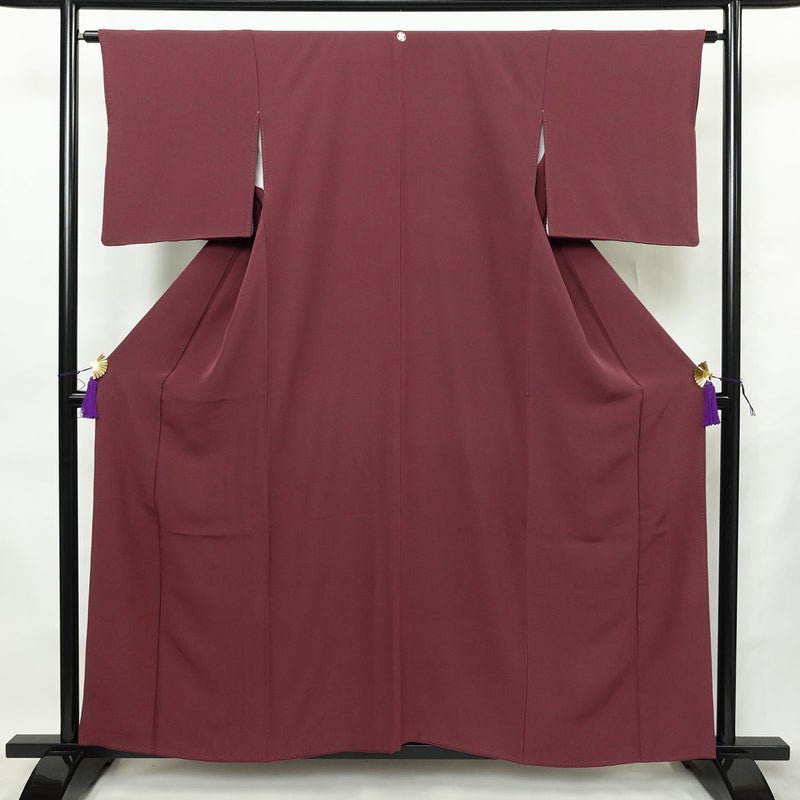 色無地 縮緬 一つ紋付き 正絹 無地 袷仕立て 身丈158cm 裄丈63cm リサイクル着物 着物 共八掛 お茶会 フォーマル 紫・藤色です。しなやかな風合いとなっております。