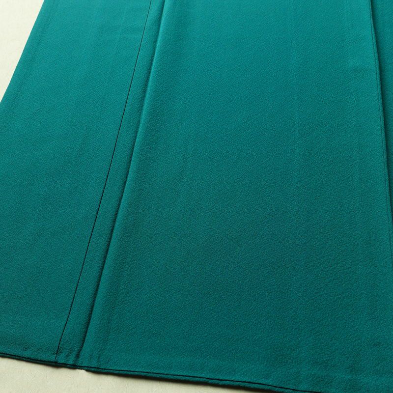 色無地 縮緬 一つ紋付き 正絹 無地 袷仕立て 身丈159cm 裄丈66cm リサイクル着物 着物 お茶会 フォーマル ゆったりサイズ 幅広 緑・うぐいす色です。しなやかな風合いとなっております。