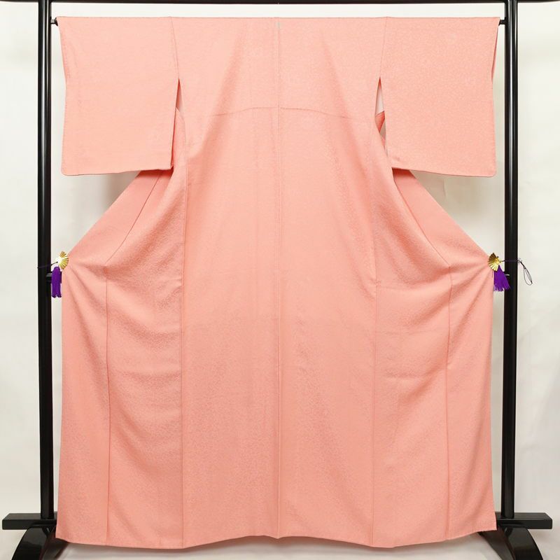 色無地 良品 一つ紋付き 正絹 木の葉・植物柄 袷仕立て 身丈162.5cm 裄丈66cm リサイクル着物 着物 入学式 お茶会 七五三 お宮参り フォーマル ピンクです。しなやかな風合いとなっております。