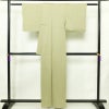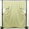 色無地 美品 柿本市郎 落款入り 正絹 木の葉・植物柄 袷仕立て 身丈159cm 裄丈64cm リサイクル着物 一部しつけ糸付き 着物 お茶会 フォーマル シンプル 緑・うぐいす色です。しなやかな風合いとなっております。