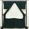 色無地 縮緬 一つ紋付き 正絹 無地 袷仕立て 身丈161.5cm 裄丈66.5cm リサイクル着物 着物 共八掛 お茶会 フォーマル 緑・うぐいす色です。しなやかな風合いとなっております。