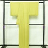 色無地 一つ紋付き 正絹 その他の柄 袷仕立て 身丈159.5cm 裄丈65.5cm リサイクル着物 着物 緑・うぐいす色です。ふんわりと柔らかい風合いとなっております。