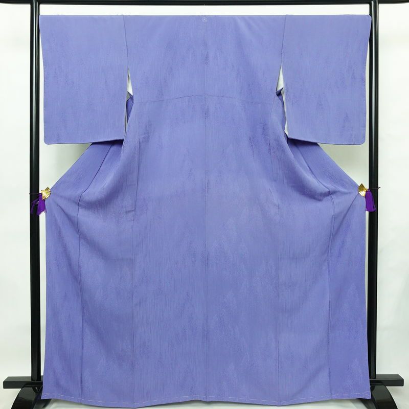風景柄が施されたフォーマルな色無地。一つ紋付きの格式ある仕様で、桔梗色やくすみ青紫の優雅な色調が着物姿を洗練された印象に仕上げます。入学式や卒業式など特別な日の装いにふさわしい美しい一枚です。