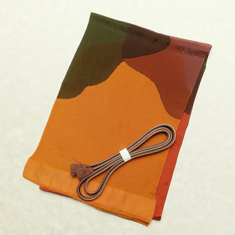 多色使いの帯揚げ・帯締めセットです。縮緬正絹素材ならではの柔らかさと締めやすさが魅力で、着物姿にモダンな雰囲気を加えます。普段使いからお出かけ、ちょっとしたお祝いの席まで幅広く活躍し、セットで揃っているためコーディネートが簡単です。状態も良好でお買い得な一品です