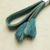 くすんだ淡い青色を基調に花柄を金糸で施した帯揚げ・帯締めセットです。縮緬正絹ならではの柔らかく締めやすい風合いが魅力で、フォーマルな着物姿に上品さをプラスします。美品で状態も良好なため安心して使用でき、卒業式や入学式など改まった場面でも着物を華やかに引き立てる、お買い得なセットです。