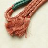 緑やうぐいす色のモダンなチェック・格子柄を施した帯揚げ・帯締めセットです。丹後ちりめんの縮緬正絹で上質な手触りがあり、締めやすさも魅力です。モダンな意匠で、着物姿に遊び心を添えつつも品格を保ちます。美品として大変状態が良く、普段使いやおしゃれ着に最適なセットです。