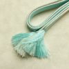 淡い青系の地色に金彩をあしらった華やかな花柄の帯揚げ帯締めセットです。落ち着いた色合いながらもさりげない金彩がフォーマルな場を格調高く演出します。正絹ならではの上質な質感が魅力で、特別な席にふさわしい和装小物です。